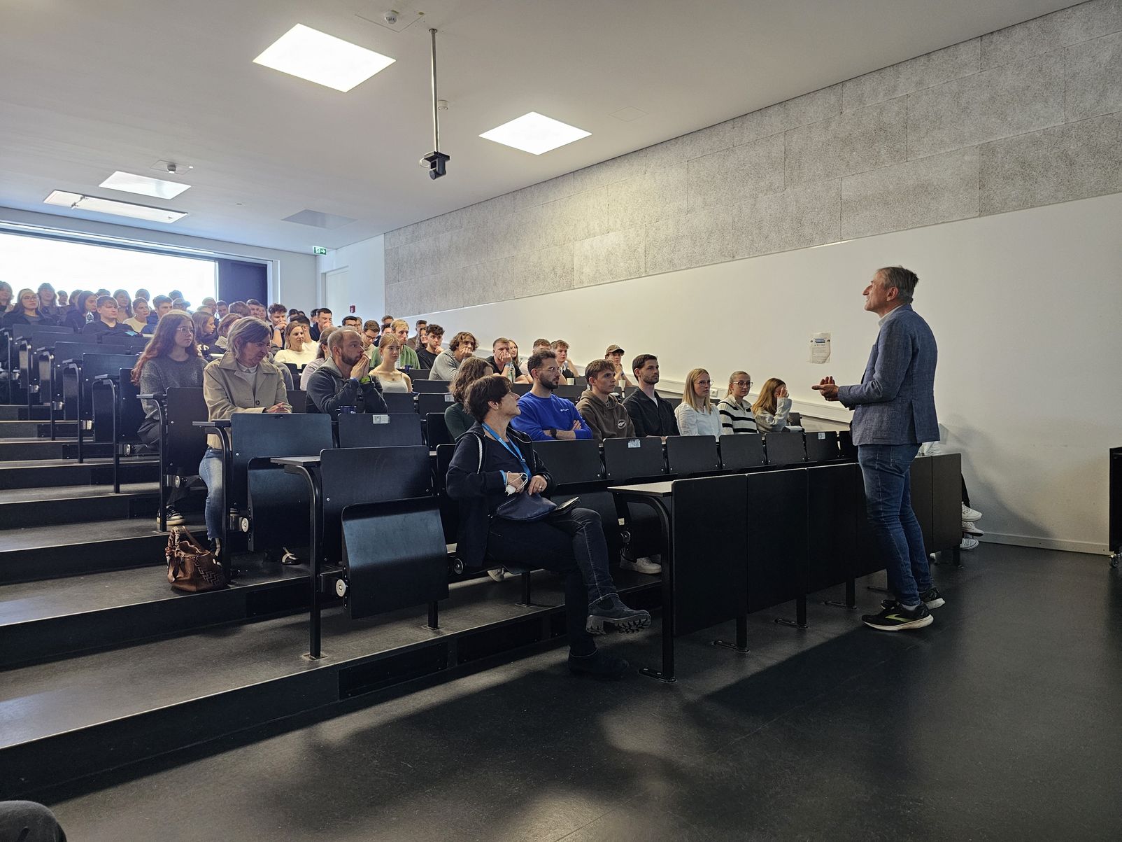 Eingeleitet worden war dieser ereignisreiche Tag vom Dekan der TH Deggendorf, Prof. Dr. Christian Rester, der die Bedeutung des reflektierten Wissens für die Patientenversorgung hervorhob und Physio Deutschland dafür dankte, dass sich der Verband für die Akademisierung der Ausbildung stark macht. Die anschließenden Fachvorträge bestritten u. a. die Vorstände des RV Bayern Markus Norys, Yvette van Remmen und Miriam Schwarzlmüller. Stark vertreten an diesem Tag waren auch die Junioren des RV Bayern, die nicht nur im Begrüßungsvortrag zur Zukunft der Physiotherapie ihre eigene Perspektive einbrachten, sondern auch in den Pausen sehr gerne und ausführlich für alle Fragen und Anliegen der Schüler*innen und Studierenden zur Verfügung standen. Der Tag endete mit dem Vortrag von Dennis Wittkopf, der als Physiotherapeut die Damenmannschaft des Deutschen Skiverbands betreut und einen spannenden und unterhaltsamen Einblick hinter die Kulissen seiner Arbeit bot.