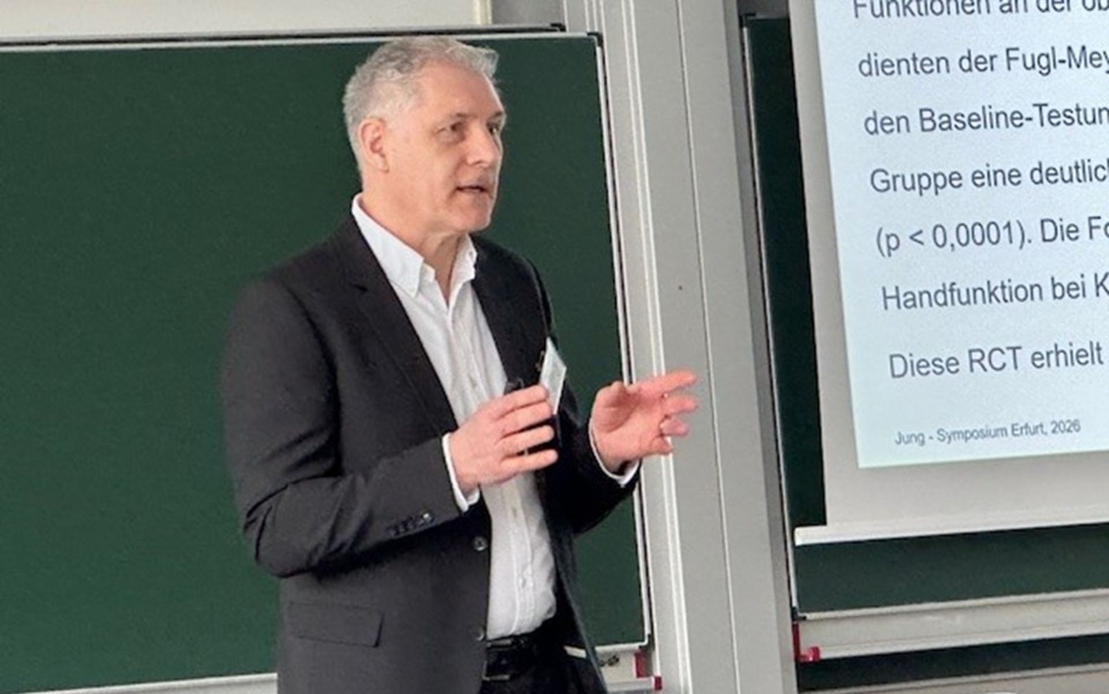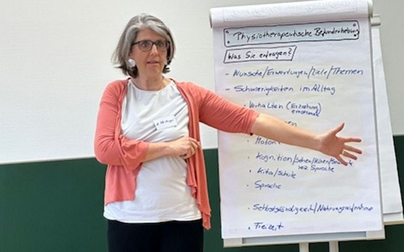 Mit rund 100 teilnehmenden Physiotherapeut*innen aus Praxis, Ausbildung und Wissenschaft fand am 21. März 2026 das Symposium Pädiatrie an der Fachhochschule Erfurt statt. Unter dem Leitthema „Um ein Kind aufzuziehen, braucht es ein ganzes Dorf“ bot die Fachkommission Physiotherapie – Kinder- und Jugendmedizin von Physio Deutschland ein abwechslungsreiches Programm mit evidenzbasierten Fachvorträgen am Vormittag, fünf praxisnahen Workshops am Nachmittag sowie einem abschließenden Impuls zur Bedeutung früher Medienerfahrungen. Die Rückmeldungen der Teilnehmenden fielen durchweg positiv aus – sowohl hinsichtlich der fachlichen Tiefe als auch des kollegialen Austauschs. Der Vormittag startete mit vier Fachvorträgen, die die zentralen Herausforderungen und Entwicklungen in der pädiatrischen Physiotherapie beleuchteten. Prof. Dr. Gabriele Hanne‑Behnke aus Berlin stellte in ihrem Beitrag die Grundprinzipien einer konsequent familienzentrierten Physiotherapie vor und betonte die Bedeutung einer kooperativen Zusammenarbeit zwischen Therapeut*innen und Familien. Im Anschluss zeigte Prof. Dr. Michael Jung (Darmstadt), wie evidenzbasierte Entscheidungsprozesse im Spannungsfeld zwischen robotikgestützten High-End-Verfahren und klassischen Hands-on-Therapien gestaltet werden können. Sein Fazit: Konventionelle physiotherapeutische Ansätze behalten einen hohen Stellenwert, solange sie nachweislich alltagsrelevante Aktivität und Teilhabe verbessern. Mit einem besonderen Fokus auf frühgeborene Kinder erläuterte Anna Seemann (BcPT, Hamburg), wie entwicklungsfördernde Positionierungen und alltagsintegrierte Elternanleitungen dazu beitragen können, die motorische und sensomotorische Entwicklung im häuslichen Umfeld optimal zu unterstützen. Den Abschluss des Vortragsblocks bildete Dr. Sabine Nantke (Neuruppin), die einfühlsam die physiotherapeutische Begleitung traumatisierter Säuglinge und ihrer Eltern beleuchtete. Sie hob hervor, wie bedeutsam sichere Interaktionen, wiederholte positive Stimulation und elterliche Feinfühligkeit für die kindliche Entwicklung nach belastenden Geburtserlebnissen sind.