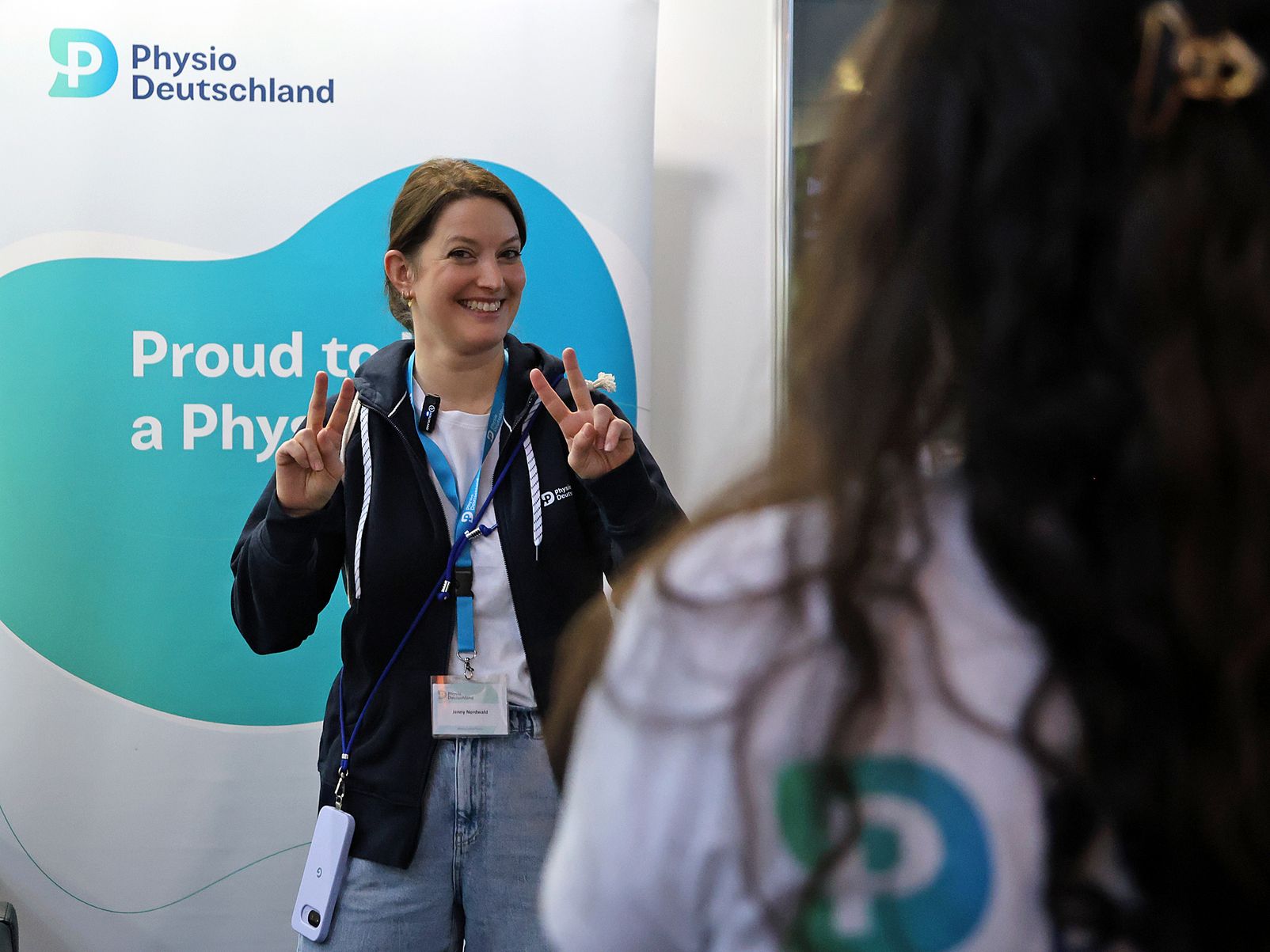 Die Vorträge und Workshops auf der therapro waren an allen drei Tagen ein voller Erfolg und durchweg hervorragend besucht. Bereits am Freitag füllten sich die Reihen früh, als es im Kleines Berufseinstiegsforum um Tipps und Tricks rund um das erste Gehalt mit BaWü-Vorstandsvorsitzenden Hannah Hecker ging. Alex Elser (Junges Physio Deutschland) berichtete über innovative VR‑Anwendungen im Schmerzmanagement. Auch die Sessions am Samstag stießen auf großes Interesse: Einen fundierten Einblick in das moderne Arthrose‑Programme GLA:D gab der Vortrag von BaWü Vorstand Dr. Claus Beyerlein. Michael Adams (Junges Physio Deutschland) berichtete über die Entwicklung therapeutischer Animationsvideos. Einen Silent-Workshop zu unserer Webinarreihe PhysioGo fand bei unserem Partner ETL Advision statt. Hier beantworteten Louise Onay (Geschäftsstelle BaWÜ), Marc Akel (stv. Vorsitzender RV NRW) und BaWü-Vorstandsvorsitzende Hannah Hecker konkrete Fragen zur Praxisgründung.